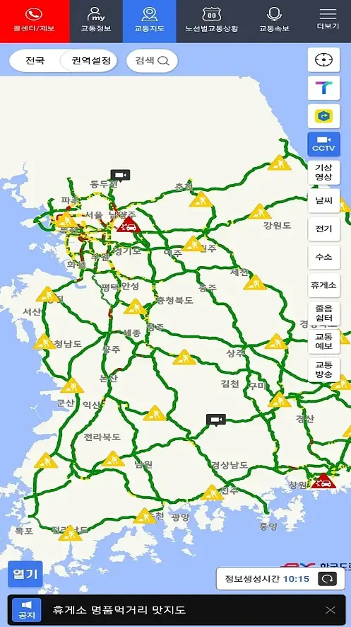 - 고속도로 정체, 사고, 작업 등의 교통속보와 해당 구간의 CCTV영상, 교통방송 확인